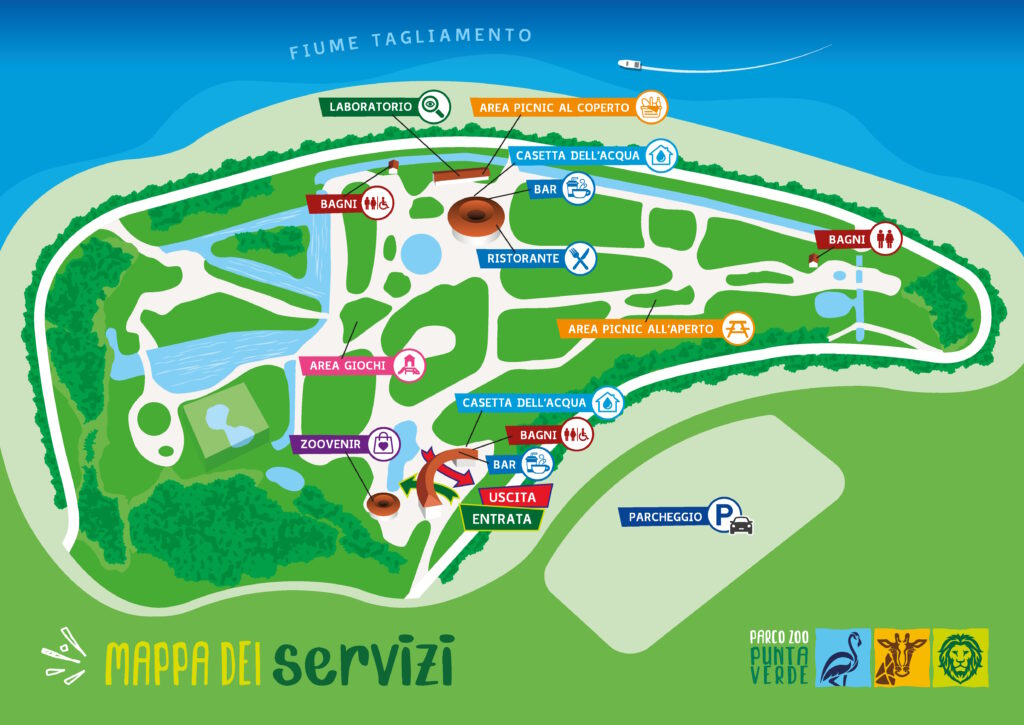 Di seguito la mappa semplificata con i principali servizi. La mappa completa del Parco è disponibile a questo link.
